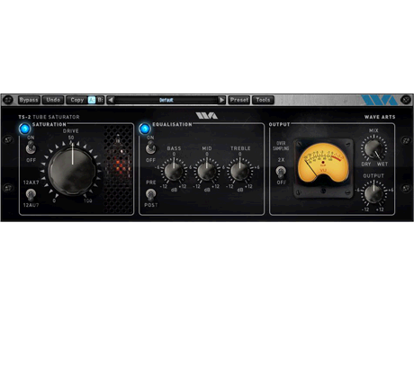 TS-2 hat viele weitere Funktionen. Sie können zwischen 12AX7 und 12AU7 Röhren für unterschiedliche harmonische Eigenschaften wechseln. Der EQ kann so eingestellt werden, dass er vor oder nach der Sättigung arbeitet. Sättigung und EQ sind separat schaltbar. Außerdem gibt es einen 2x Oversampling-Modus, der einen sehr hochwertigen Resampling-Algorithmus verwendet. Verwenden Sie den 2x-Modus, um aliasierte Verzerrungsharmoniken zu dämpfen. Nutzen Sie die Mix-Steuerung, um den bearbeiteten Klang mit dem Original zu mischen. Und schließlich hat TS-2 ein wunderschönes Interface.