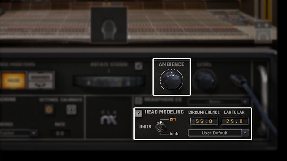 Verwenden Sie die präzise Emulation der Akustik von Mix LA oder stellen Sie eine feuchtere oder trockenere Umgebung ein. Für persönliche Anpassungen des 3D-Effekts an Ihre Kopf-/Ohranatomie geben Sie Ihre persönlichen Kopfmaße in den Kalibrierungsbereich der Kopfanatomie des Plugins ein.