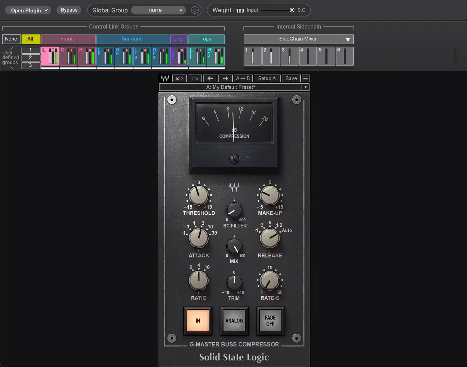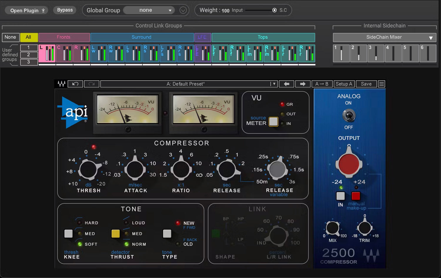 - Comprehensive shared internal sidechain system, for mix-wide dynamics processing
