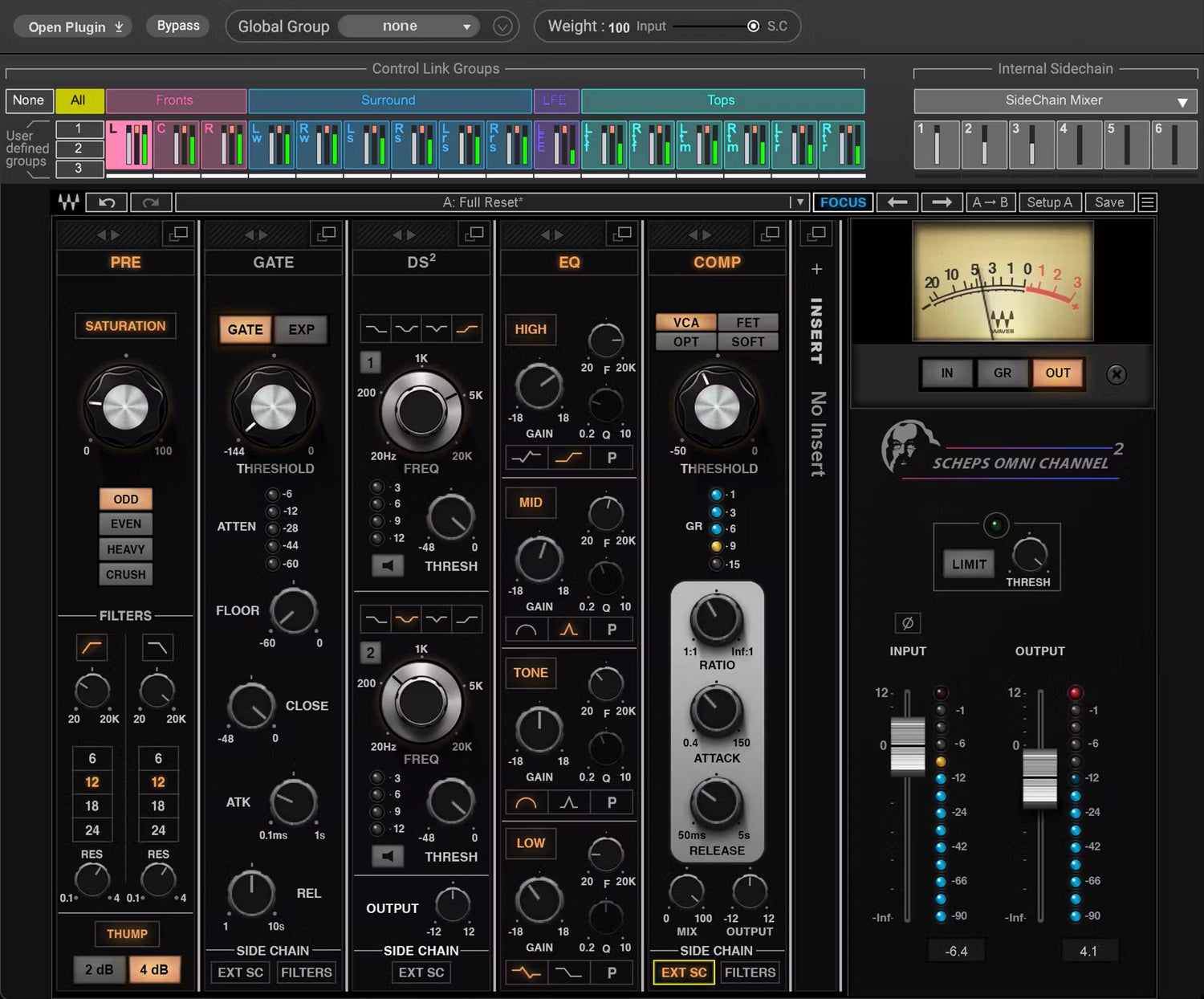 Jetzt können Sie immersive Busverarbeitungs-Setups in Multikanal- / objektbasierten Mischungen erstellen, indem Sie Ihre bevorzugten Waves-Plugins verwenden – komplett mit einem gemeinsamen internen Sidechain-System für dynamische Verarbeitung über das gesamte Mix.