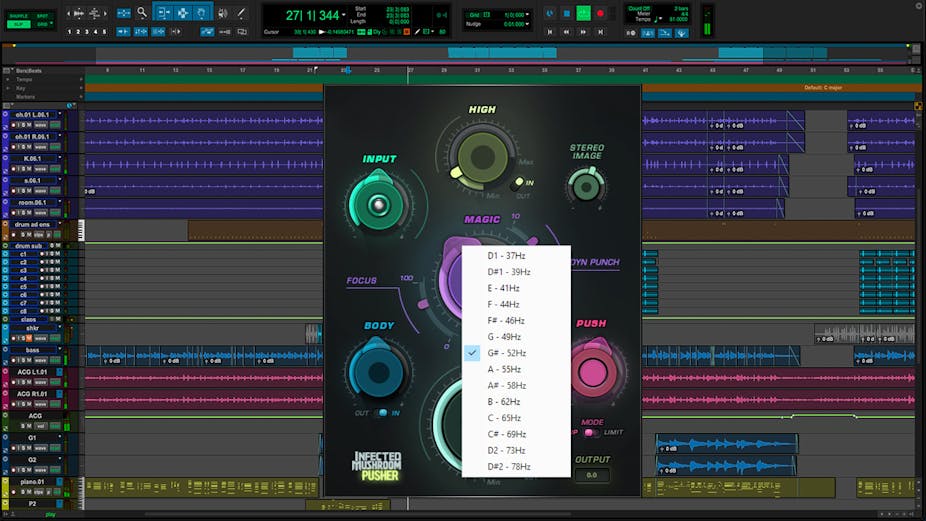 Das Geheimnis des erstaunlichen Tieftonbereichs von Pusher ist, dass er nicht nur die Tiefen verstärkt, sondern sie auch abstimmt. Jetzt werden Ihr Kick und Bass vollständiger und auf eine raffiniertere Weise in Ihre Mixe integriert als je zuvor.