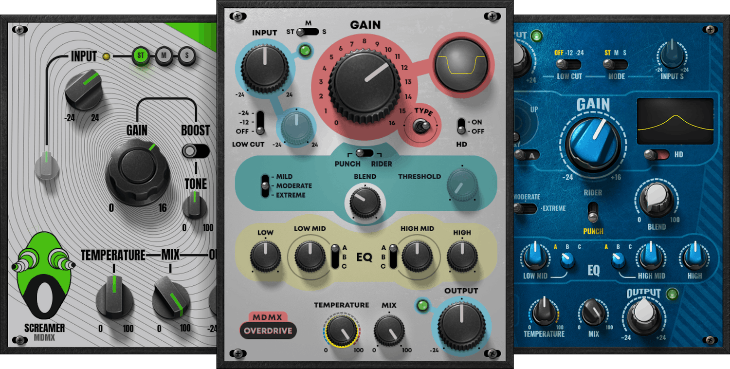 Distortion ist nicht nur für Gitarristen. Obwohl MDMX von ikonischen Gitarren-Stompboxen inspiriert wurde, bieten diese vielseitigen, virtuellen Versionen mehr Funktionen, mehr Optionen, Mid-Side-Verarbeitung, dynamische Reaktion und andere Verbesserungen, die MDMX universell für alle Instrumente anwendbar machen.