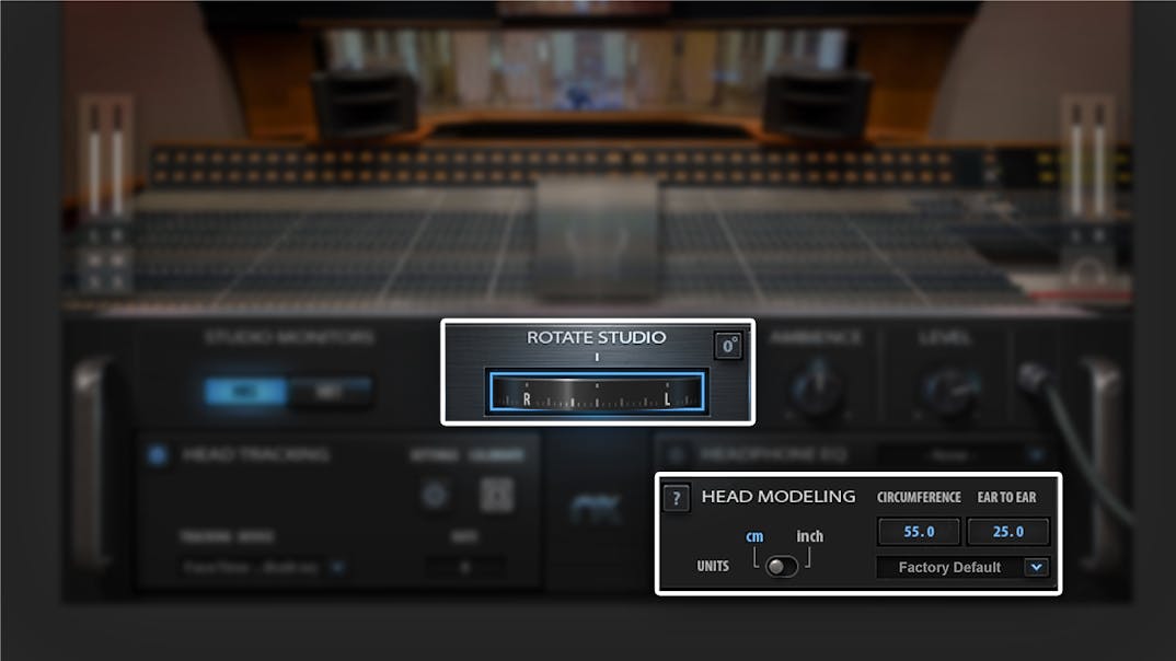 Verwenden Sie die genaue Emulation der Akustik von Ocean Way oder stellen Sie eine feuchtere oder trockenere Umgebung ein. Für persönliche Anpassungen des 3D-Effekts an Ihre Kopf-/Ohranatomie geben Sie Ihre persönlichen Kopfmaße in den Kalibrierungsbereich der Kopf-Anatomie des Plugins ein.