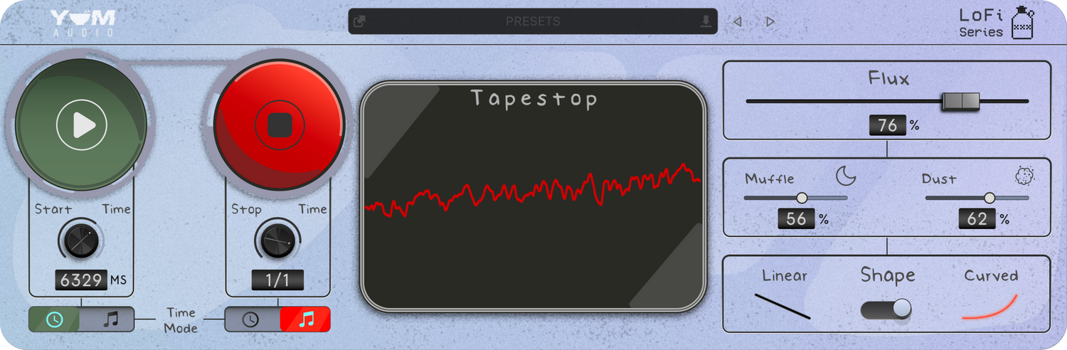 Tapestop verwendet virtuelle Tape-Schaltungen, um das Pitch-Verhalten und die Instabilitäten zu replizieren, die ein analoger Tape-Player beim Starten oder Stoppen erzeugt. Mit Flux-, Noise- und Muffle-Effekten sowie vollständig anpassbaren Start- und Stoppzeiten haben Sie die volle Kontrolle - machen Sie es genau oder locker und erwecken Sie Ihren Klang zum Leben, wie Sie es möchten.